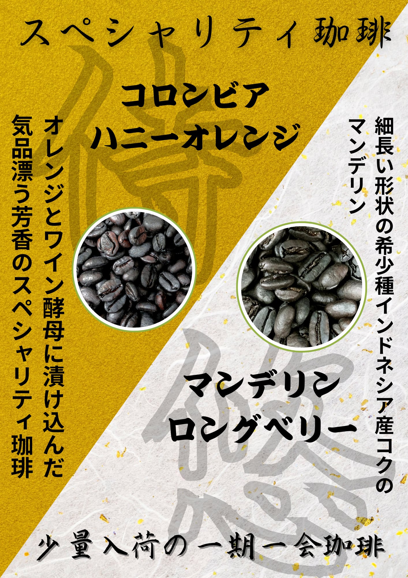 豆挽き希望の方は購入時に申し付け下さいませ。